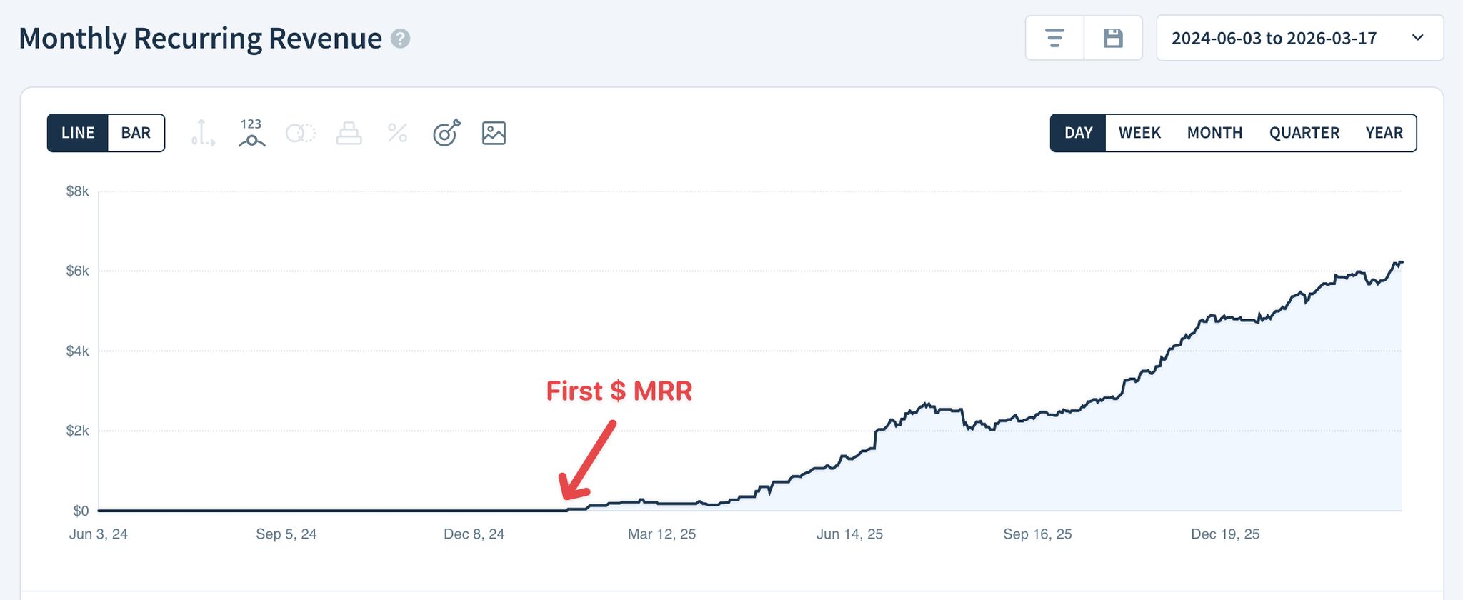 ReactIn.io vient de passer les 6 000$ de MRR 🎉 Premier dollar : 24 janvier 2025 1k$ : 122 jours 2k$ : 33 jours 3k$ : 123 jours 4k$ : 23 jours 5k$ : 55 jours 6k$ : 56 jours La leçon ? La croissance n'est pas linéaire. Le premier palier a été interminable. Puis tout s'accélère. Puis ça ralentit. Puis ça repart. Pendant les trois premiers mois, on avait l'impression que rien ne marchait. Heureusement qu'on n'a pas lâché.